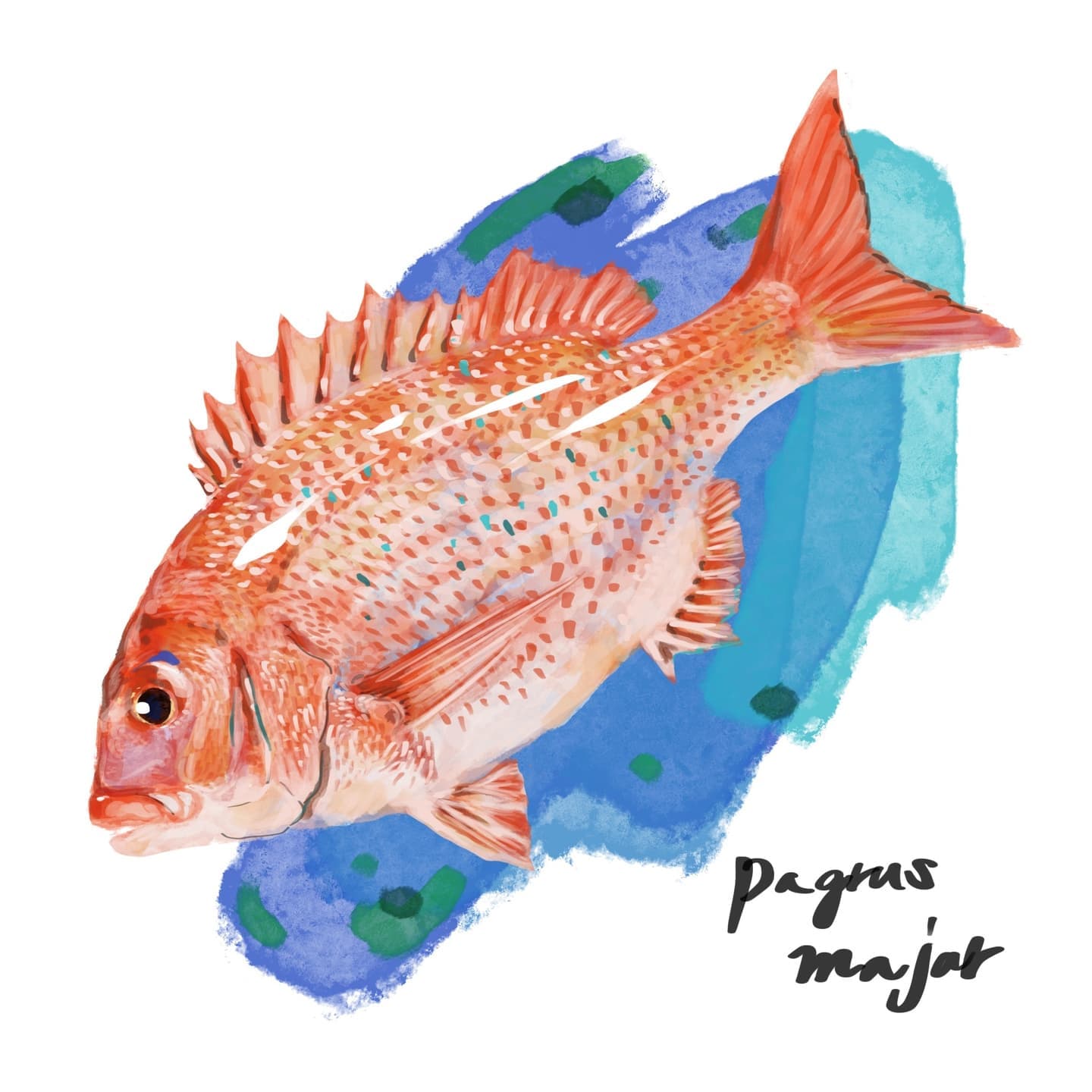 目的に合わせたイラスト制作を承っています。 一尾の魚を丁寧に描き起こし、必要に応じて構図や色調の提案も行います。