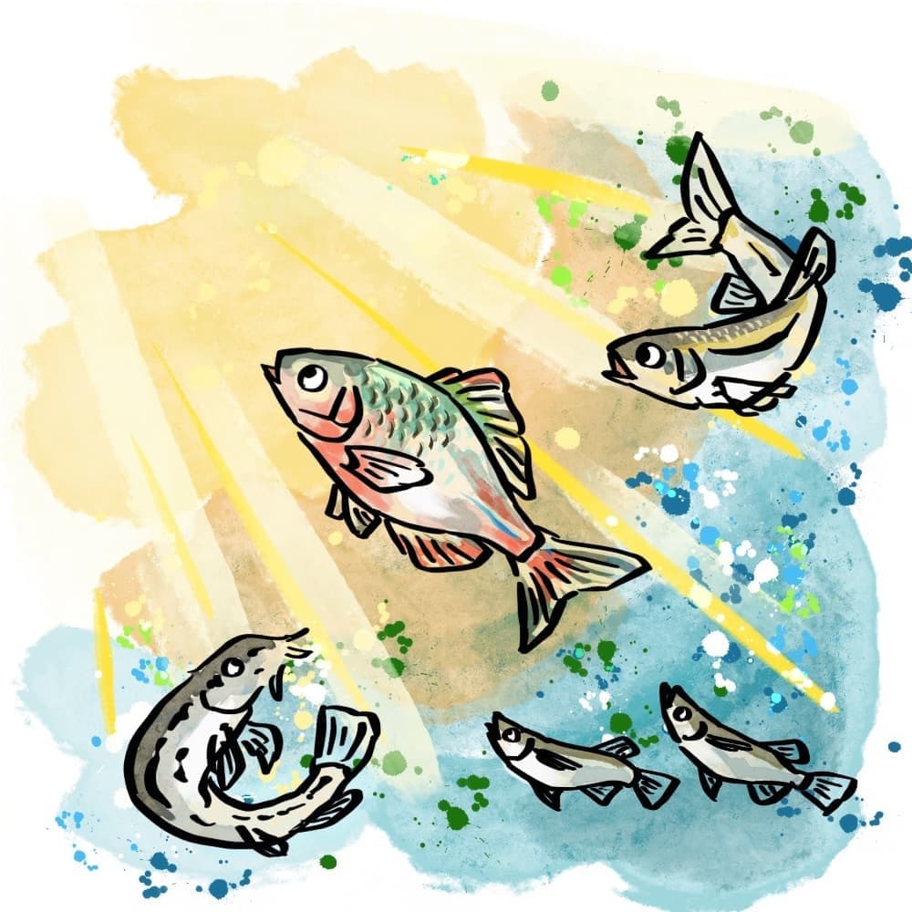 水辺の世界を舞台に、小さな命が出会い、迷い、成長していく姿を、絵と文章で表現しました。絵本のように読み進めながら、自然の豊かさや生き物のつながりを感じていただければ嬉しいです。魚好きの方はもちろん、子どもと一緒に楽しみたい方や、自然や環境に関心のある方にもおすすめの一篇です。