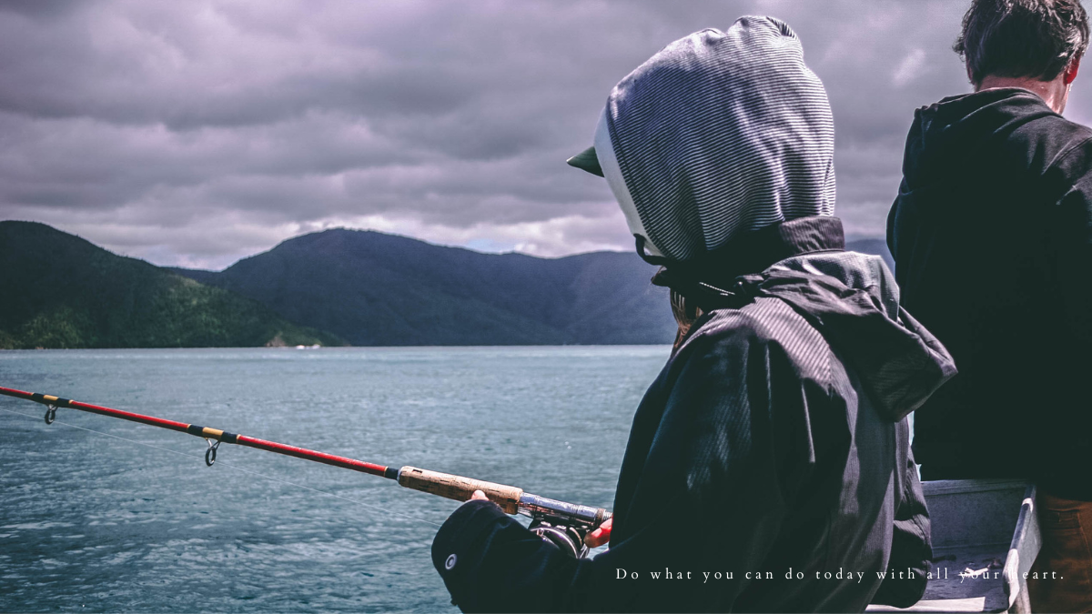 秋の釣り大会なら紅葉や秋刀魚、夏のキャンプなら涼しげな水色背景を組み合わせると雰囲気が高まります。 -