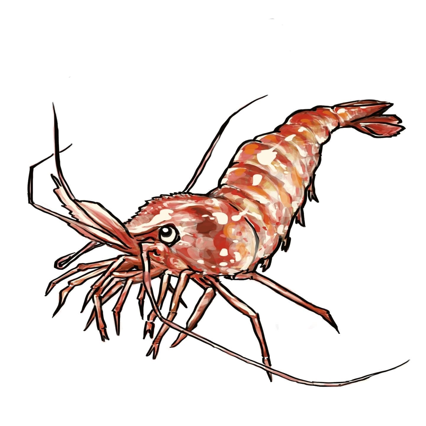 プリッとした食感と赤白のコントラストが特徴のエビは、彩りを添える定番ネタ。子どもにも人気があり、イラストにするとかわいらしい印象になります。寿司キャラクター化にも最適です。